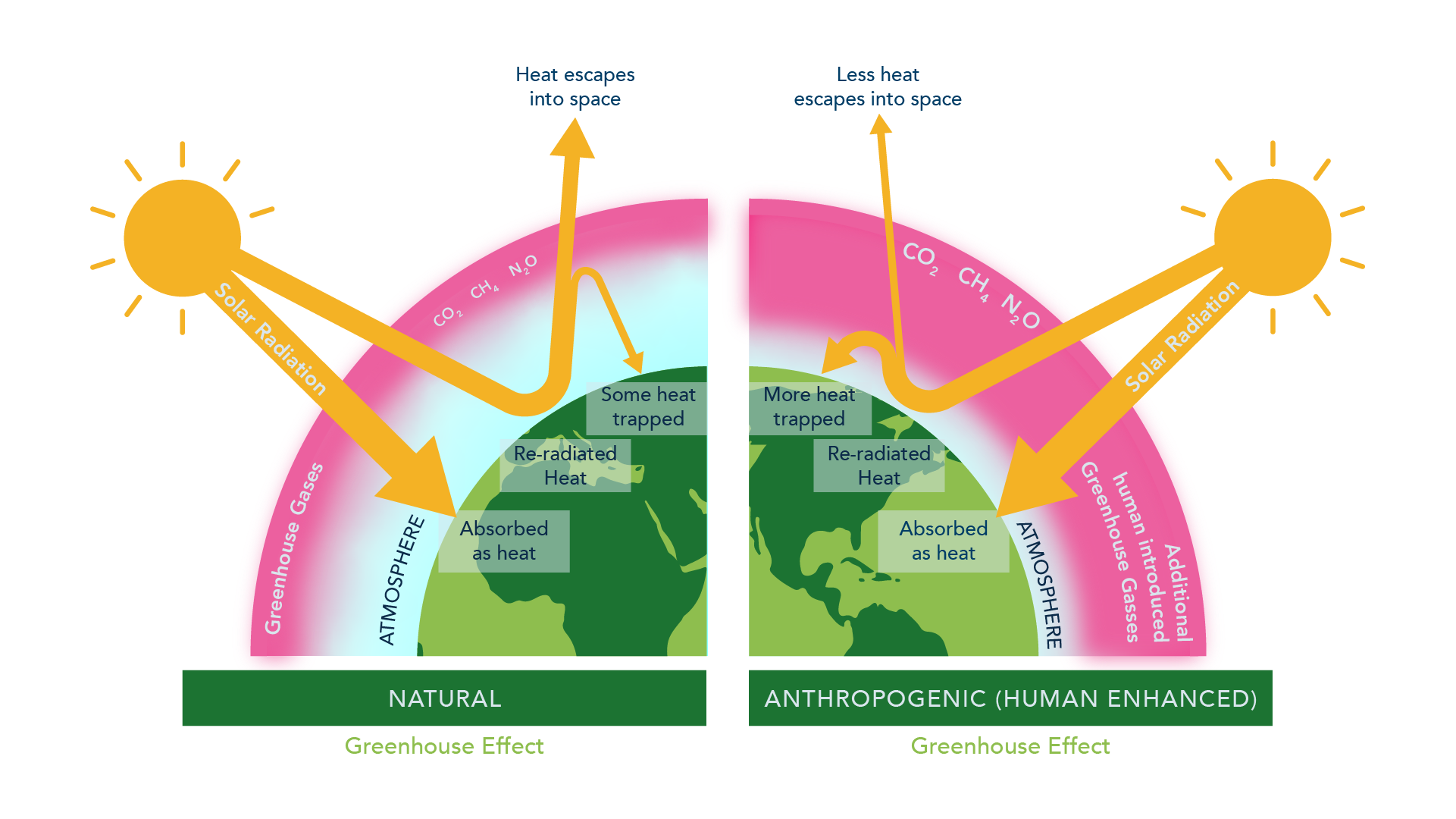 Human activities have fundamentally altered our climate. The burning of fossil fuels, large-scale deforestation, sweeping land use changes, and other activities have released vast amounts of greenhouse gasses (GHGs) that trap heat into our atmosphere and cause long-term increases in global temperatures.