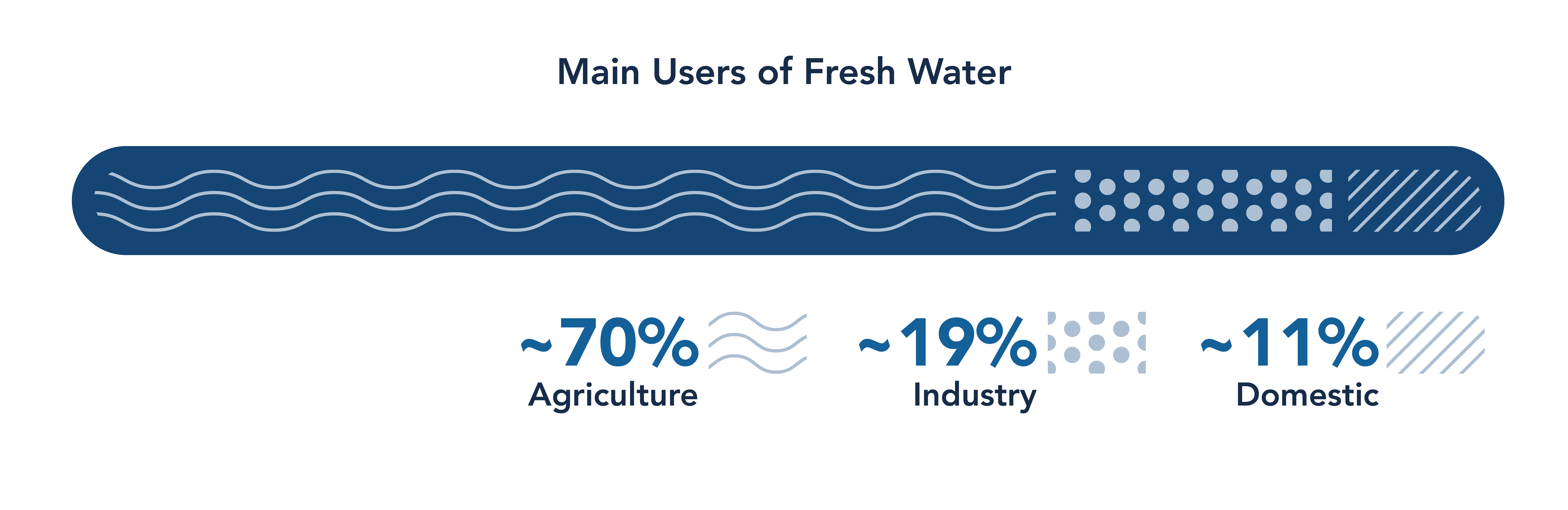 Human activities are a leading cause for water stress and diminishing water quality. Agriculture alone uses nearly 70% of the world’s available freshwater, followed by industry at nearly 20% - and the currently prevailing methods of water management are wasteful and unsustainable, putting our already scarce resources at greater risk.